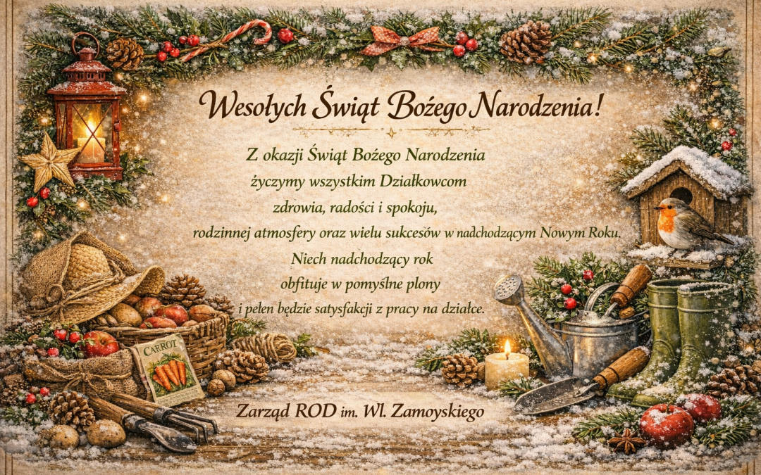 Życzymy, aby Nowy Rok przyniósł Państwu wiele satysfakcji z pracy na działkach, obfite plony, sprzyjającą pogodę oraz realizację wszystkich planów i marzeń – zarówno tych ogrodniczych, jak i osobistych.